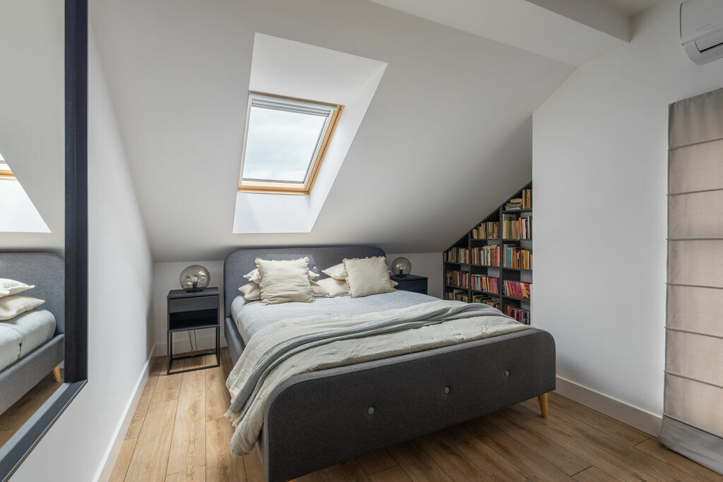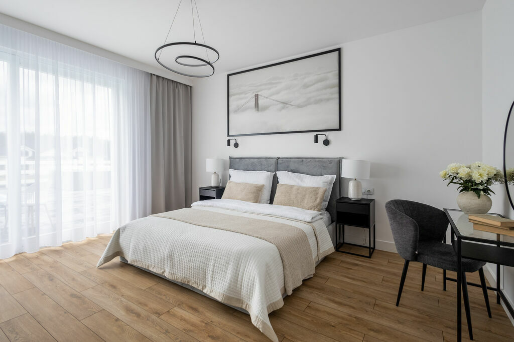 sypialnia z garderobą i prywatną łazienką,